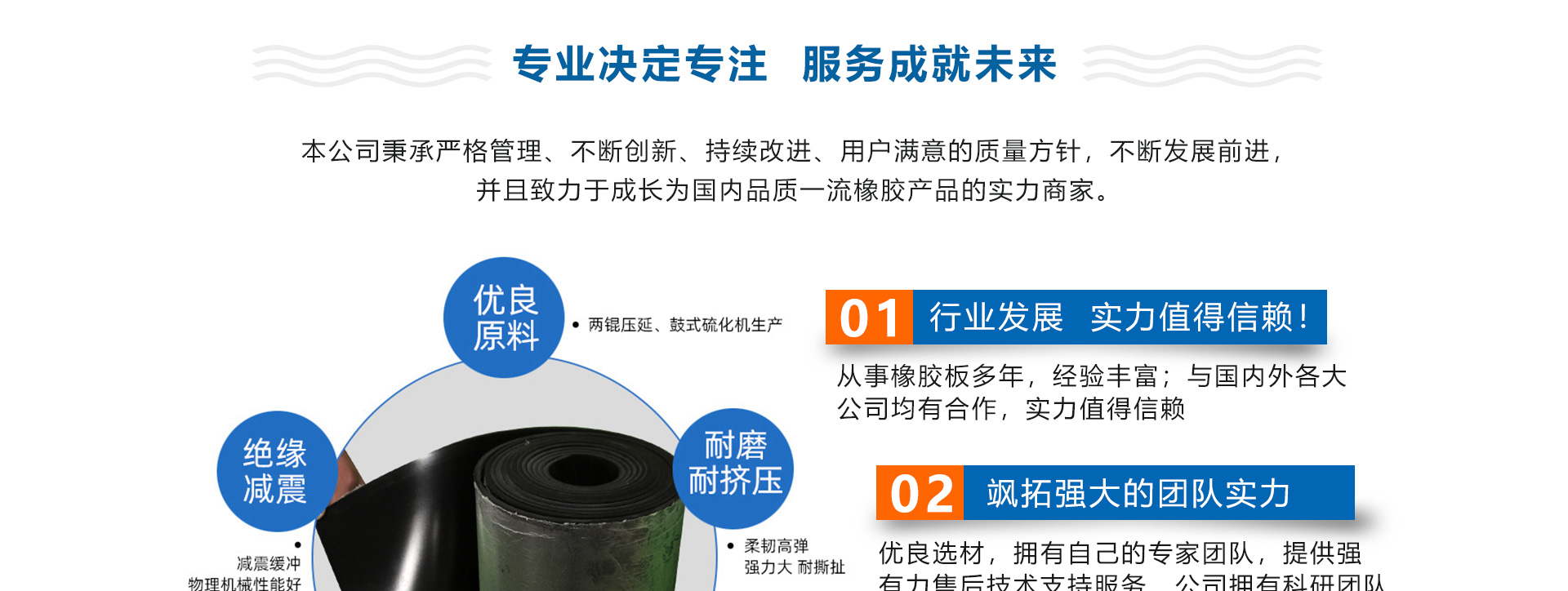 安徽颯拓新材料科技有限公司成立于2018年07月,公司位于安徽省宣城市宣州區(qū)貍橋鎮(zhèn)宣州經(jīng)濟(jì)開(kāi)發(fā)區(qū)南漪湖大道28號(hào),公司主要生產(chǎn)研發(fā)銷售橡膠板、工業(yè)橡膠板、絕緣橡膠板、天然橡膠板、加布橡膠板、氟橡膠板等,公司有完善的師資團(tuán)隊(duì)及生產(chǎn)設(shè)備。本公司秉承嚴(yán)格管理、不斷創(chuàng)新、持續(xù)改進(jìn)、用戶滿意的質(zhì)量方針,不斷發(fā)展前進(jìn),并且致力于成長(zhǎng)為國(guó)內(nèi)品質(zhì)好的橡膠產(chǎn)品的實(shí)力商家。公司長(zhǎng)期以優(yōu)良的服務(wù)、合理的價(jià)格與多家企業(yè)建立了長(zhǎng)期的合作關(guān)系。安徽颯拓新材料有限公司熱誠(chéng)歡迎各界前來(lái)參觀、考察、洽談業(yè)務(wù)。